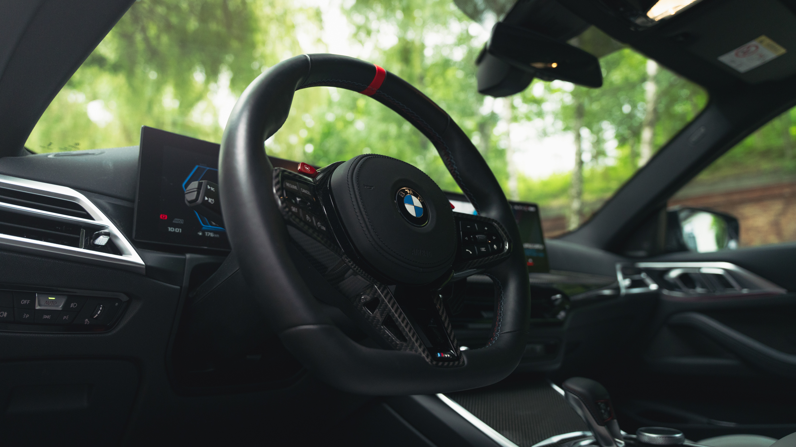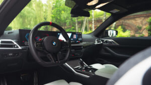 BMW M4 Competition xDrive jest stworzone dla Ciebie. Doświadcz wrażeń z jazdy i sportowego charakteru tym przestronnym coupe, wyposażonym w potężny napęd – podwójnie doładowany silnik benzynowy o mocy 530 KM, który zamienia je w prawdziwy samochód wyścigowy. Poczuj olbrzymią moc przekazywaną na wszystkie cztery koła za pomocą doskonałej, ośmiobiegowej skrzyni M Steptronic z Drivelogic. Dodajmy tego aerodynamiczny kształt nadwozia i otrzymujemy prawdziwie sportowe auto. BMW M4 Competition xDrive Coupe, które możesz wynająć w naszej wypożyczalni, zapewni Ci nie tylko rewelacyjne osiągi, ale niezapomniane wrażenia z jazdy, dzięki twardemu, typowo sportowemu zawieszeniu. Podróż urozmaici wnętrze BMW wyposażone w multimedialny system z 12,3-calowym wyświetlaczem, nawigacją oraz Apple CarPlay i Android Auto pozwalający na sprawowanie pełnej kontroli nad pokonywanymi kilometrami. Wykorzystane w modelu zaawansowane technologie inspirowane motorsportem zapewnią  przyjemności z jazdy zarówno podczas codziennego casualowego użytkowania jak i dłuższych wypadów.