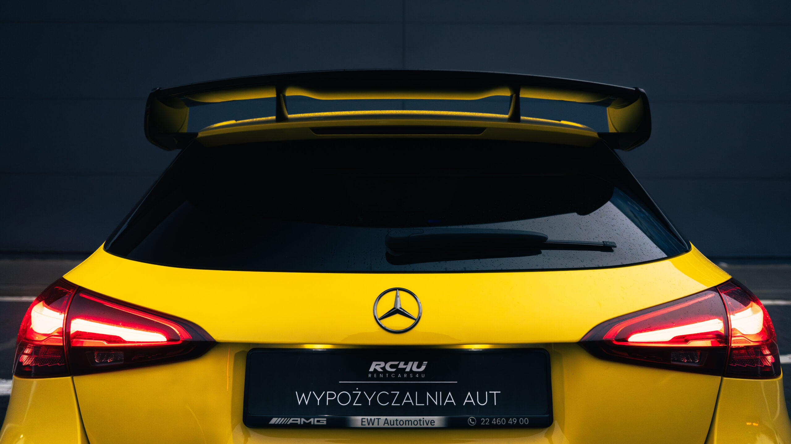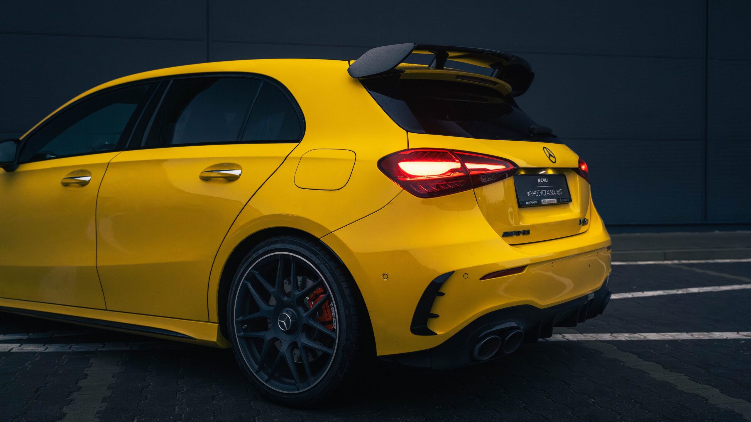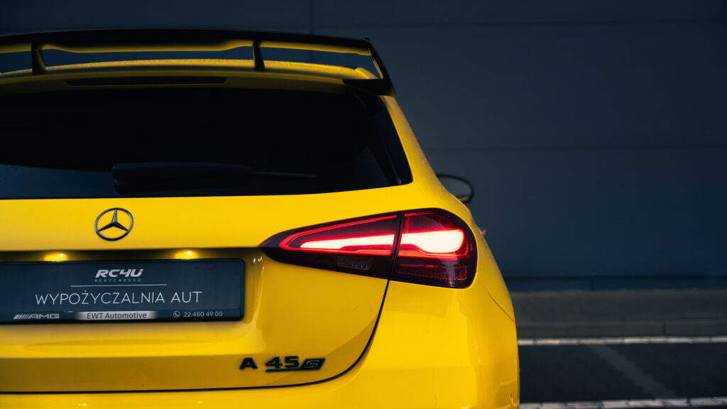 Mercedes-AMG A45 S to kompaktowy model o wyjątkowej dynamice i precyzyjnym prowadzeniu. Mocna jednostka AMG, szybka reakcja na gaz i zaawansowany napęd 4MATIC+ zapewniają stabilność w wymagających warunkach. Wnętrze oferuje sportowe fotele, nowoczesny system multimedialny i intuicyjny kokpit, co sprawia, że samochód świetnie sprawdza się w wynajmie do jazdy miejskiej i pozamiejskiej.
