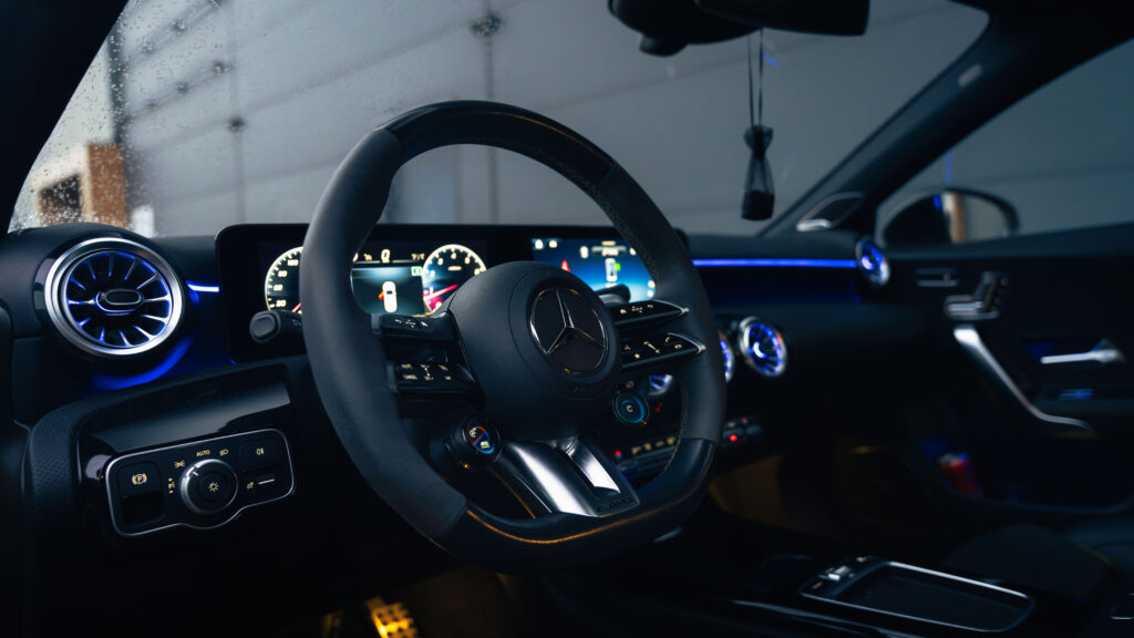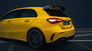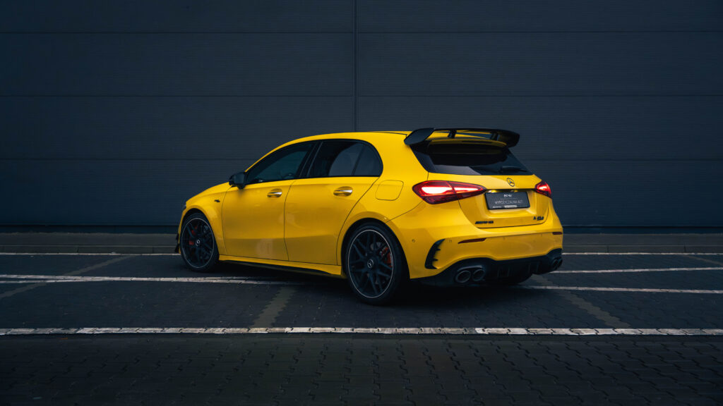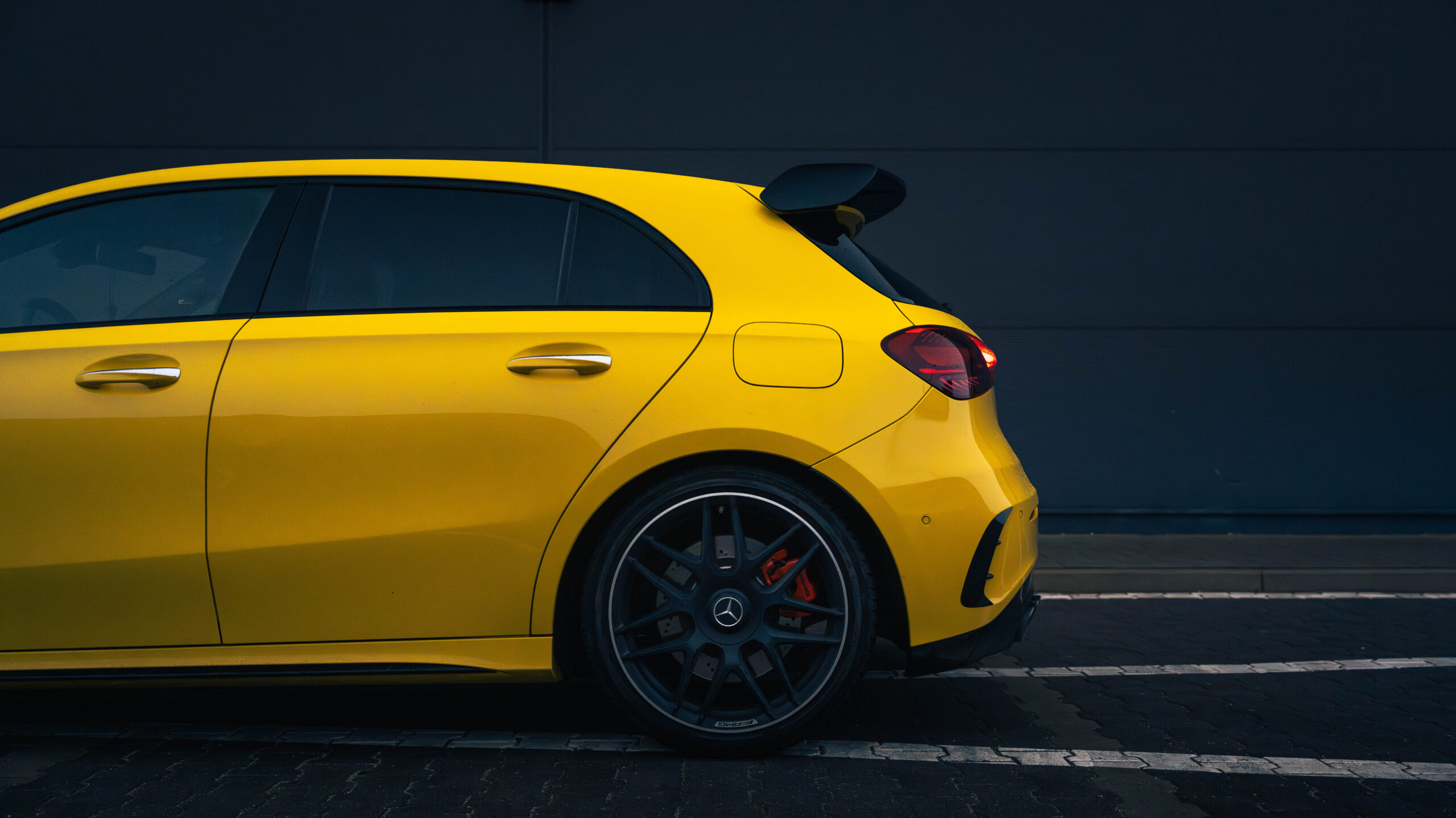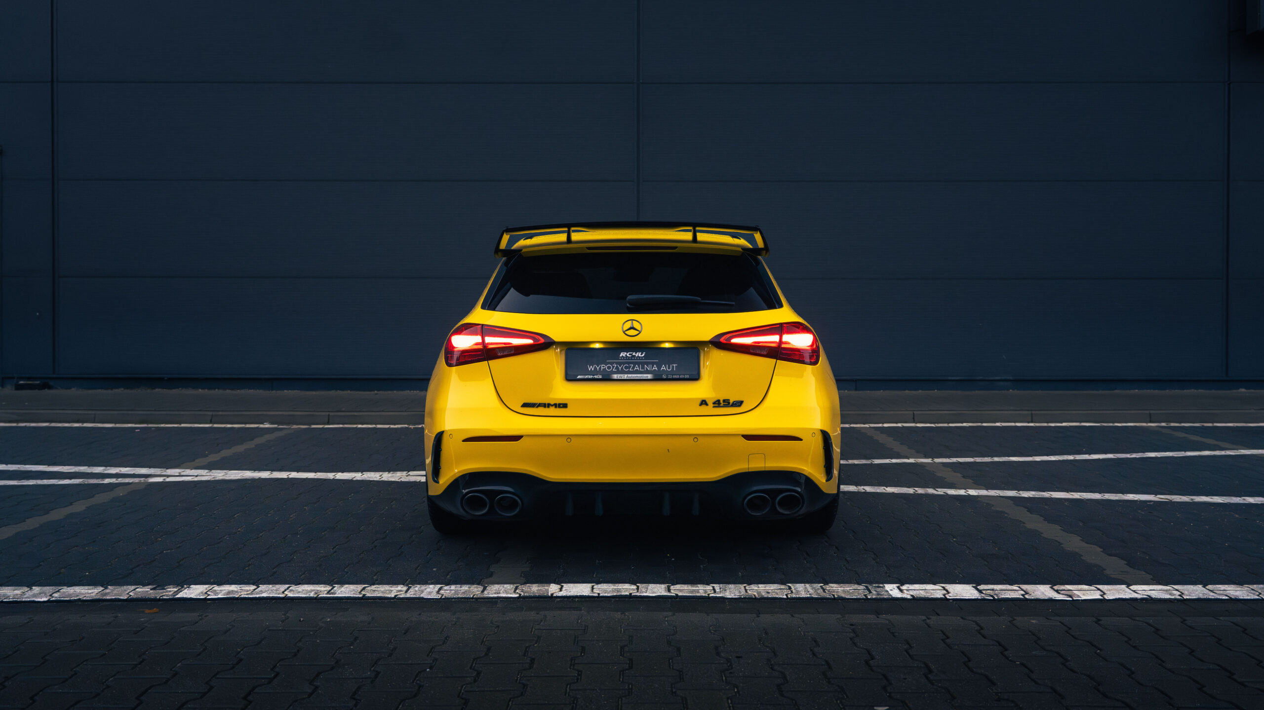 Mercedes-AMG A45 S to kompaktowy model o wyjątkowej dynamice i precyzyjnym prowadzeniu. Mocna jednostka AMG, szybka reakcja na gaz i zaawansowany napęd 4MATIC+ zapewniają stabilność w wymagających warunkach. Wnętrze oferuje sportowe fotele, nowoczesny system multimedialny i intuicyjny kokpit, co sprawia, że samochód świetnie sprawdza się w wynajmie do jazdy miejskiej i pozamiejskiej.